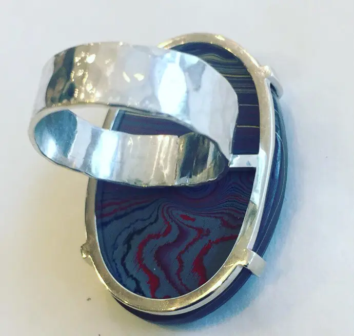 Le serti de la bague n'était pas stable. Renforcement du serti : cerclage de la base et griffes de soutien de la pierre en argent massif
